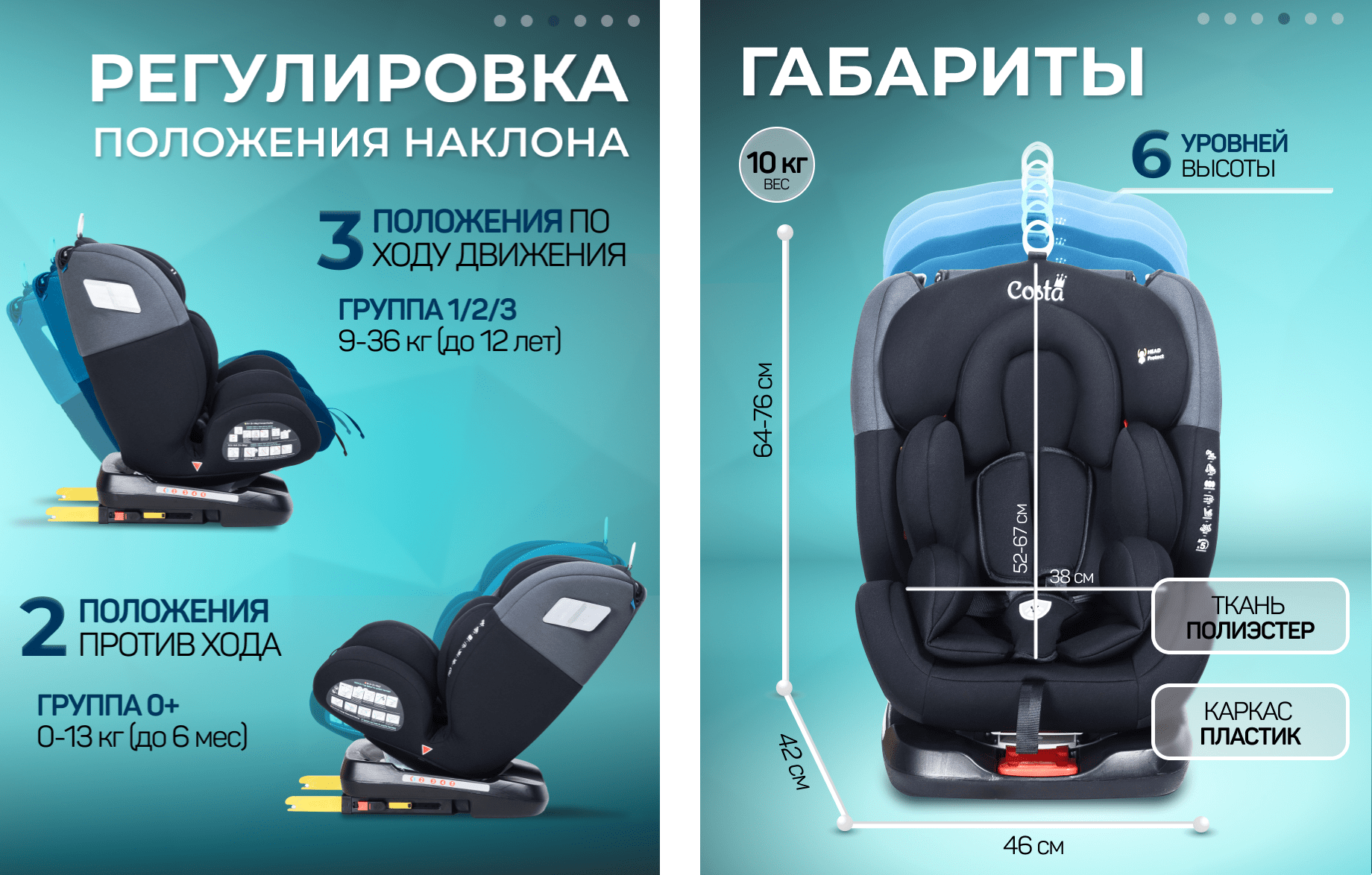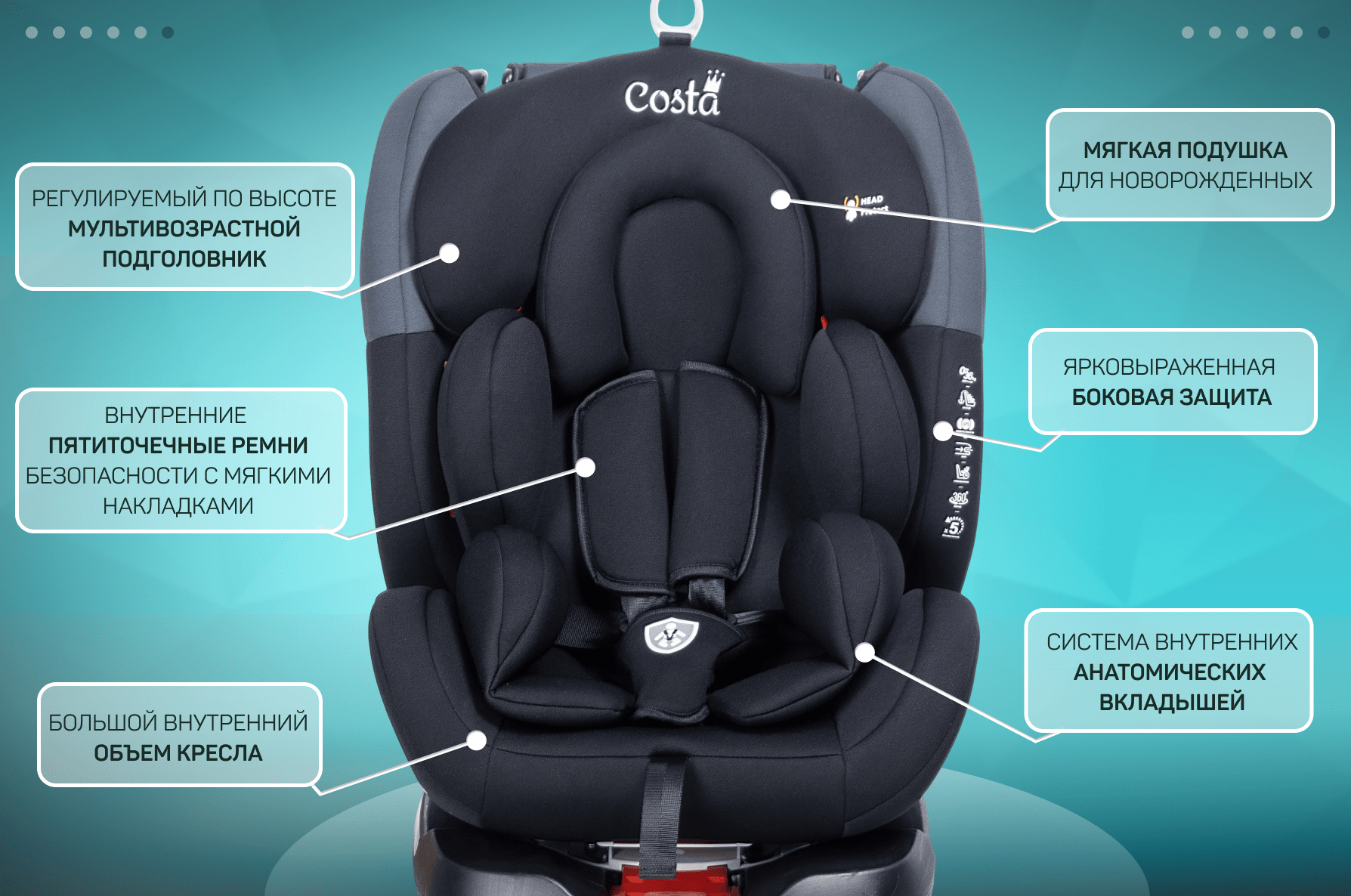 Costa KBH308 ISOFIX (коста) - универсальное автокресло, предназначенное для всех возрастных групп: уникальная конструкция трансформируется по мере роста ребенка! Его можно использовать с рождения ребенка до 10-12 лет. Модель удобна в установке и регулировке. Комплектуется дополнительной мягкой подушкой для новорождённых малышей, которая обеспечит правильное эргономическое положение. Автокресло оснащено механизмом плавного вращения на 360 градусов, что позволит легко поворачивать кресло в сторону двери для посадки и высадки ребенка. Вся обивка съемная и легко стирается при необходимости.