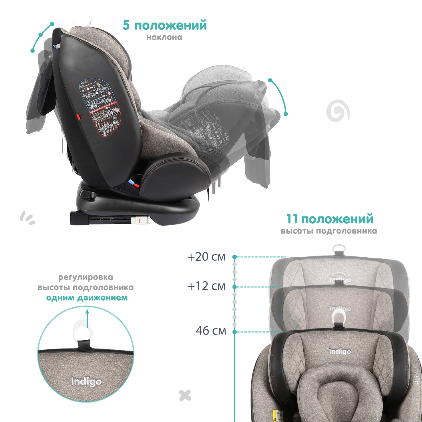 • Регулировка по высоте подголовника.