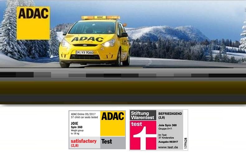 Детское автокресло Joie Spin 360 (Джои спин 360) - качественное и надежное автокресло для ребенка с рождения до 3-4 лет, с хорошими оценками в независимых краш тестах ADAC. Автокресло соответствует европейскому стандарту ECE-R129 (i-size), а в независимых краш тестах получило оценку 2,8, что соответствует оценке "нормально".