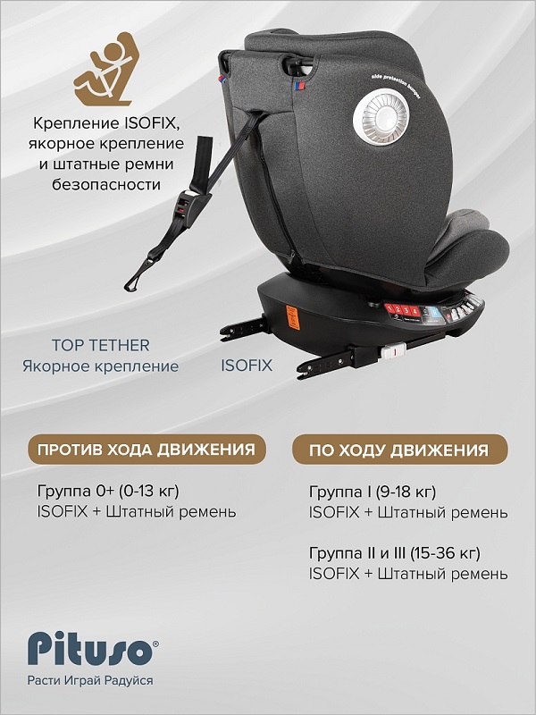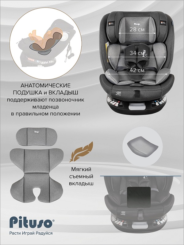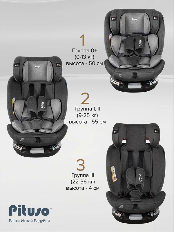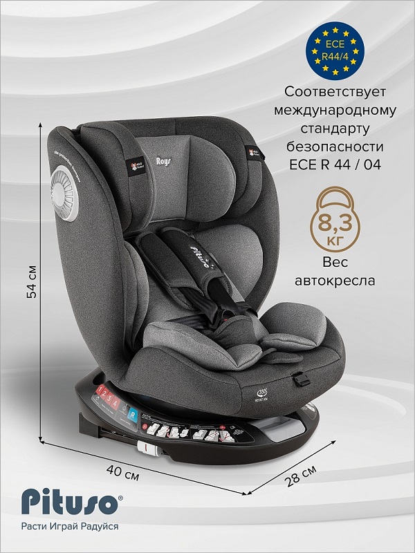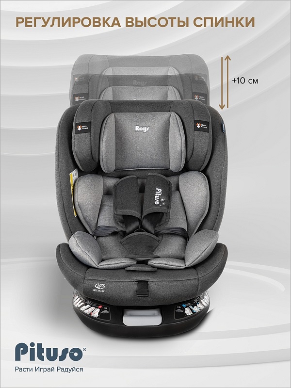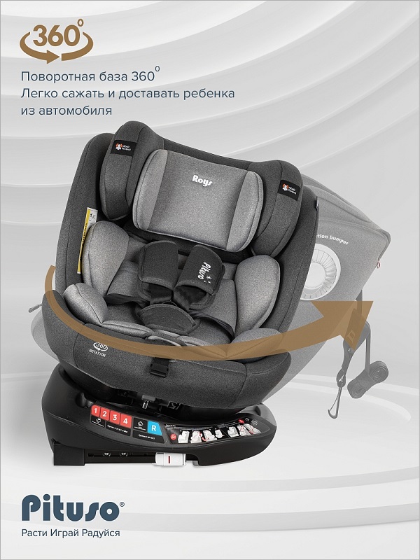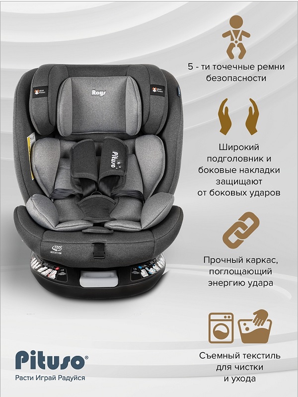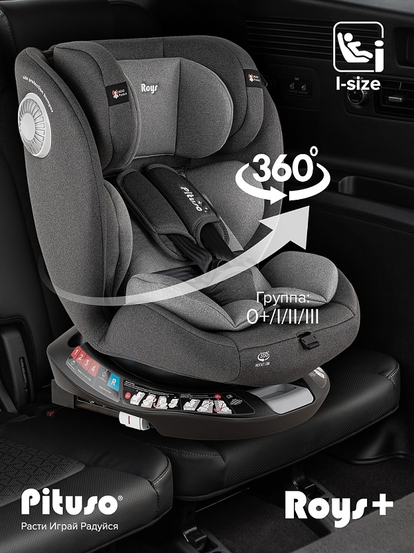 Почему Pituso Roys+ – идеальный выбор? Это универсальное поворотное кресло на 360° сочетает в себе эргономичный дизайн, максимальную безопасность и комфорт для маленьких пассажиров от рождения до 12 лет.