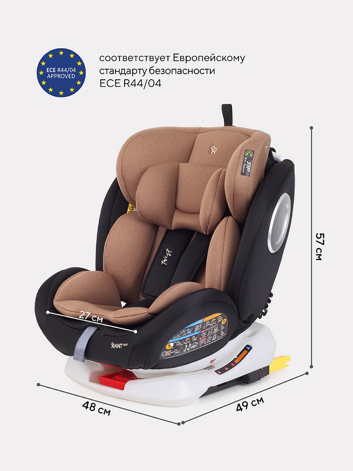 - автокресла имеют международный Cертификат Eвропейского Cоюза (EAC) - ECE 44/04. Каждая модель перед запуском в линейке бренда Rant проходит ряд краш-тестов, имитирующих реальные дорожные ситуации.