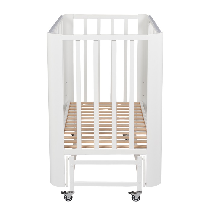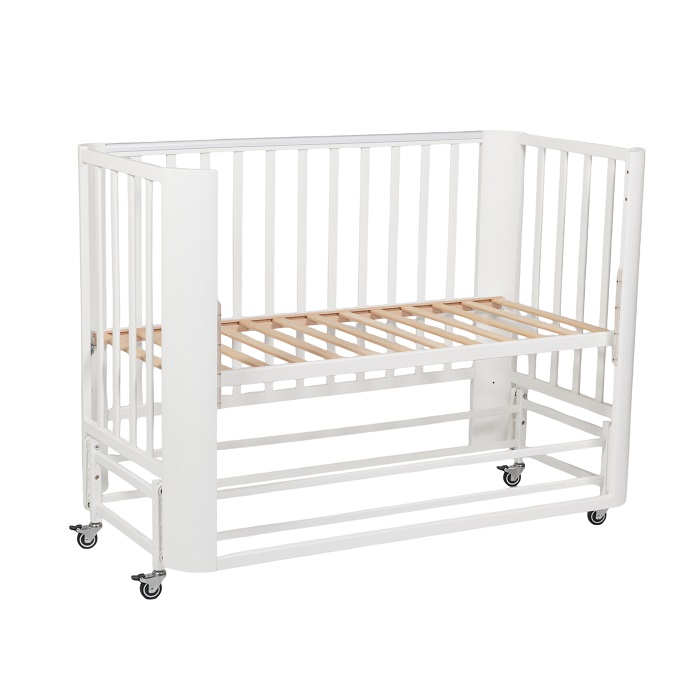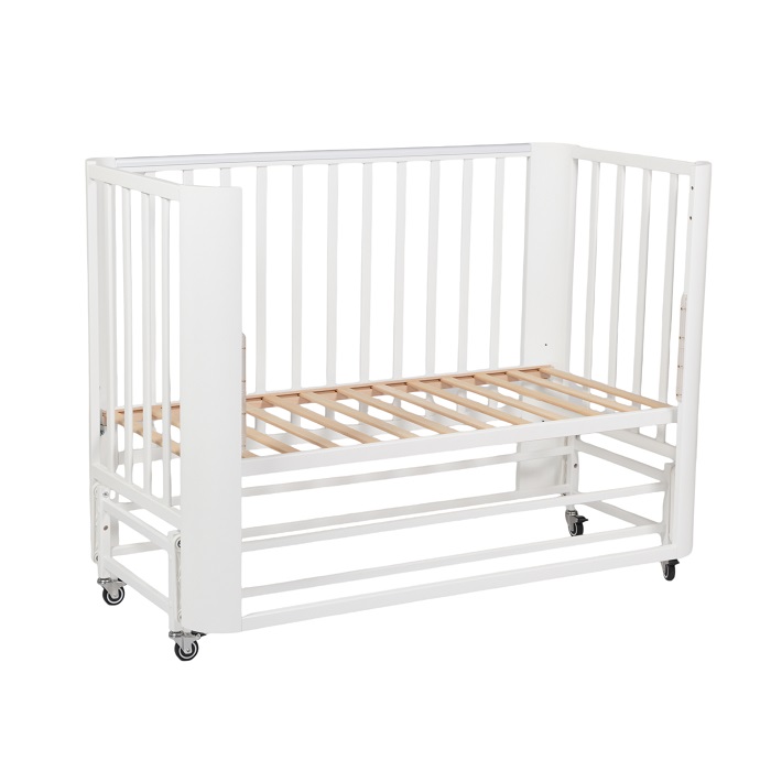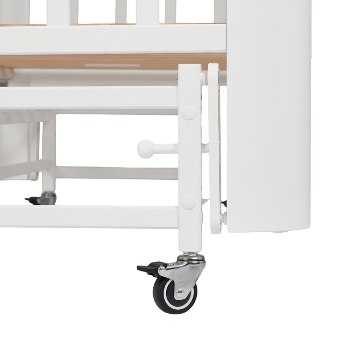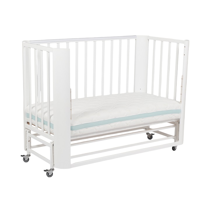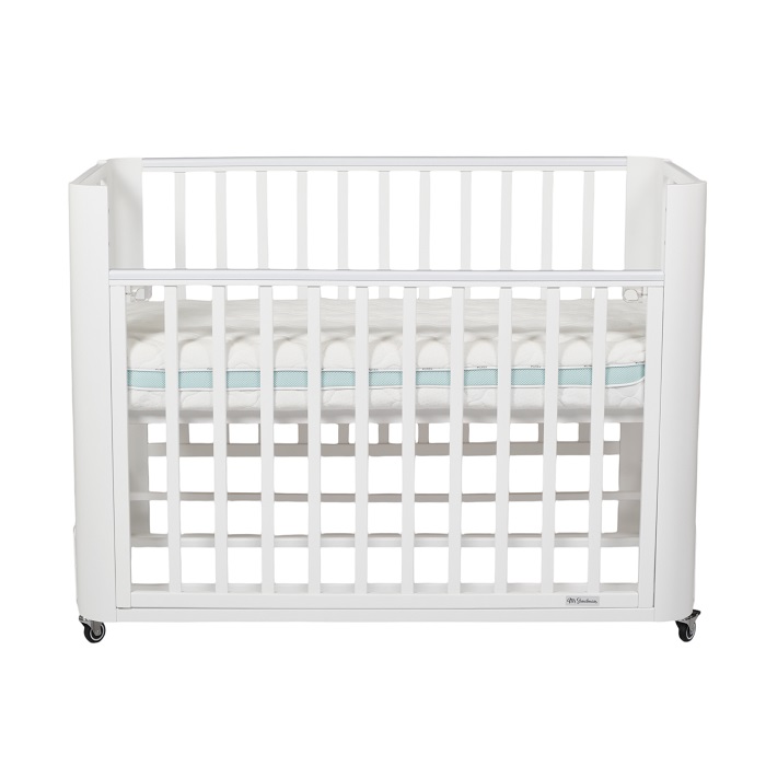 Кровать с маятником и колесами не утяжеляет внешний вид кроватки. Она выглядит легкой, компактной, стильной, минималистичной. Такой вариант кроватки прекрасно впишется в любой интерьер.