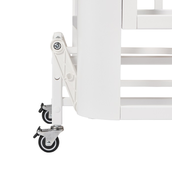 Обновление 2025 года это усиленные колеса, которые выдерживают нагрузку до 100 кг. Так же большим преимуществом кроватки является возможность ее использования как приставной модели для ночного сна рядом с родителями. Специальные крепежные ремни уже ходят в комплект.