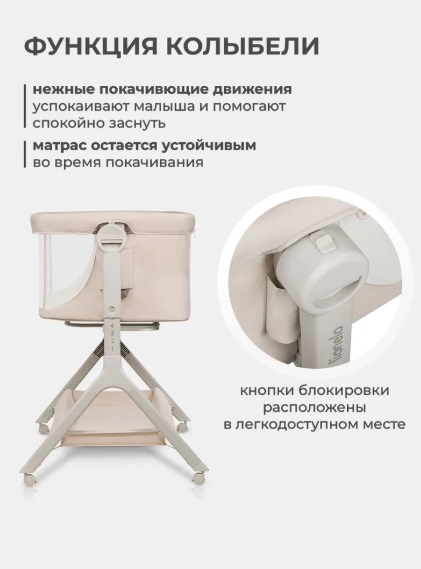 - Функция колыбели, позволяющая нежно и спокойно укачивать малыша, погружая его в блаженное состояние покоя. Пользоваться функцией люльки очень просто, кнопки блокировки расположены в легкодоступном месте, поэтому достаточно небольшого движения, чтобы сдвинуть их и начать или заблокировать покачивание.