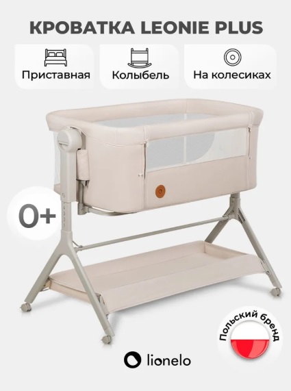 Колыбель Lionelo Leonie Plus (Лионело леоние плюс) - детская кроватка с опускающимся бортиком, колесами и функцией качания. Кроватка подойдет для ребенка с рождения до 9 кг, примерно до 6-8 месяцев, или до момента когда малыш начнет активно переворачиваться или садиться.