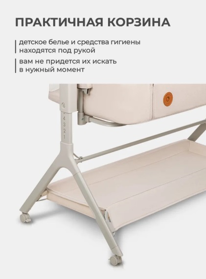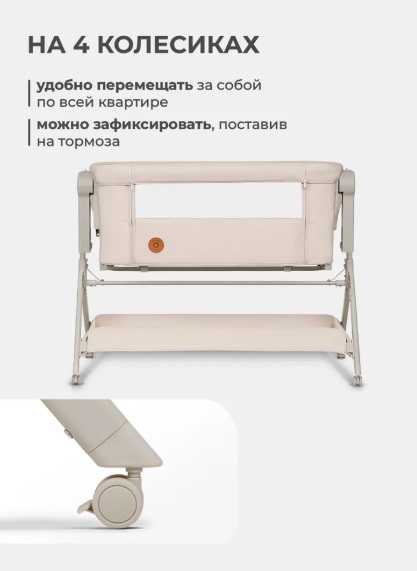 - 4 колеса с тормозом для легкого перемещения (тормоз в каждом колесе предотвращает скольжение кроватки);