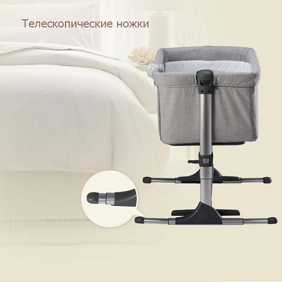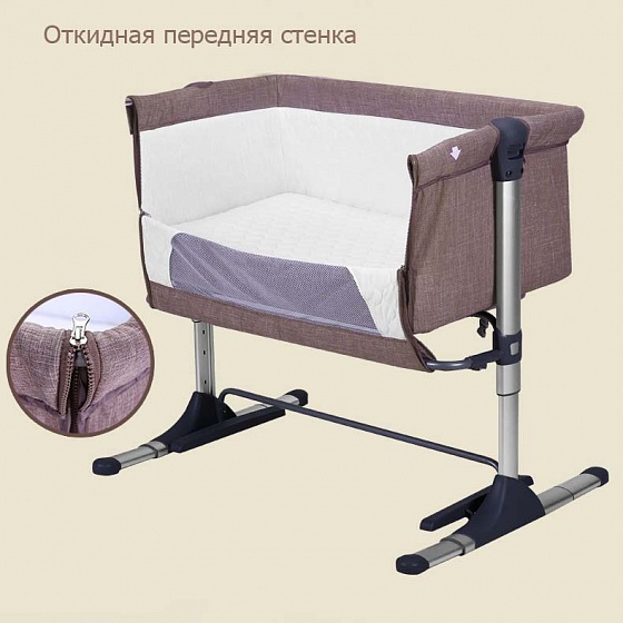 - Откидная передняя стенка на молниях обеспечивает быструю трансформацию с полноценной кроватки в приставную.