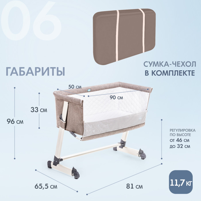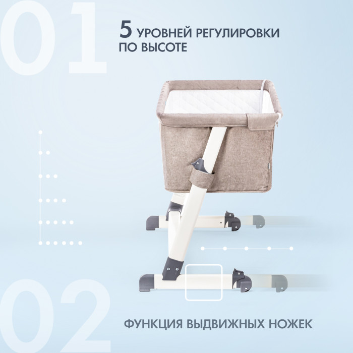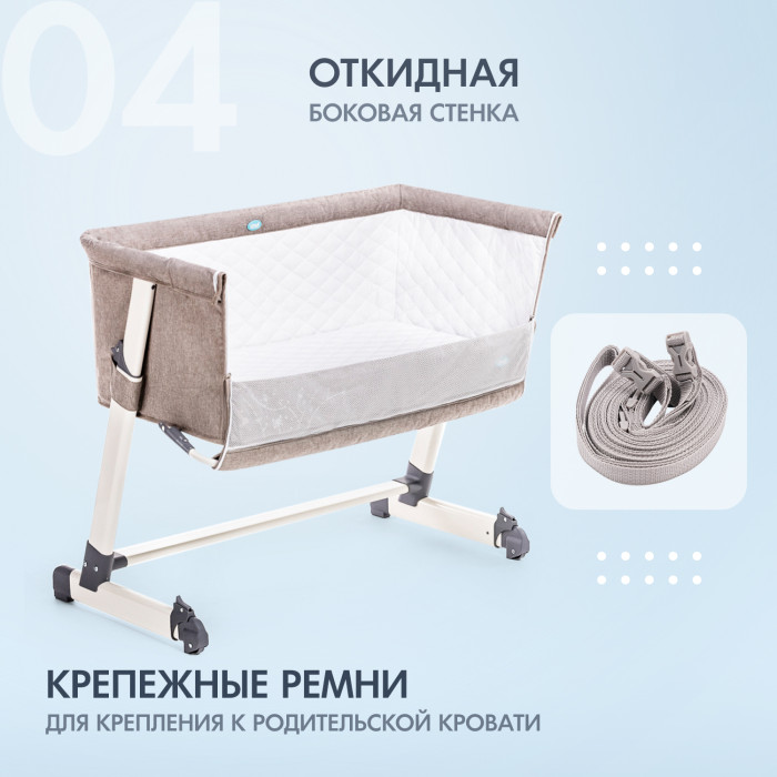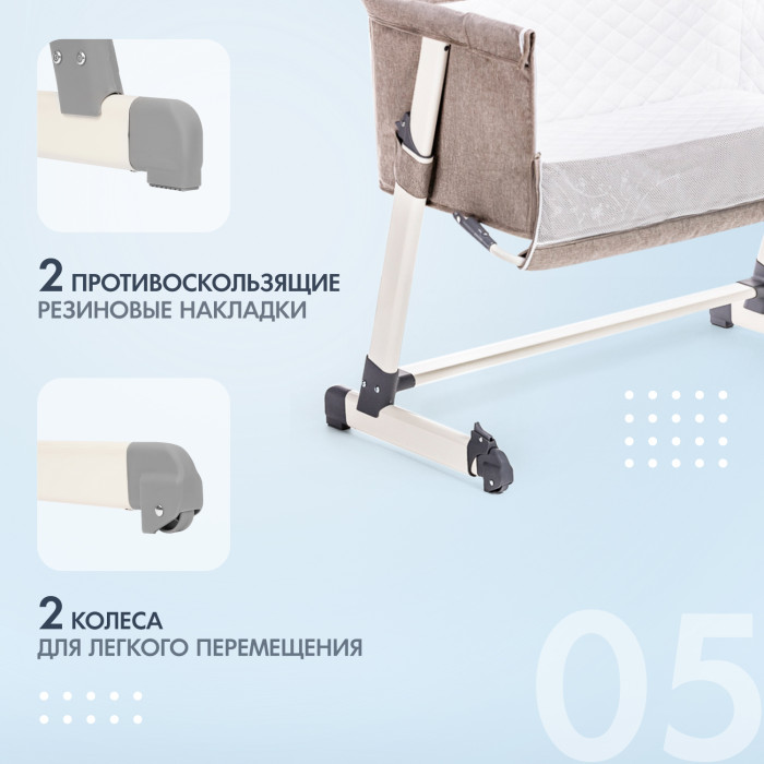 - В комплекте колесики, позволяющие легко передвигать приставную кроватку