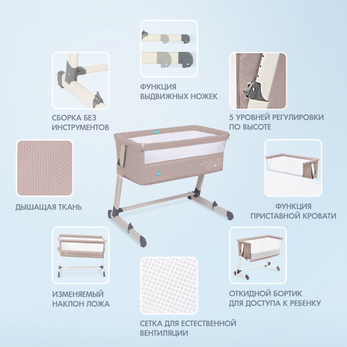 - Бортик из «дышащей» сетчатой ткани, обеспечивающий циркуляцию воздуха и возможность наблюдения за ребенком