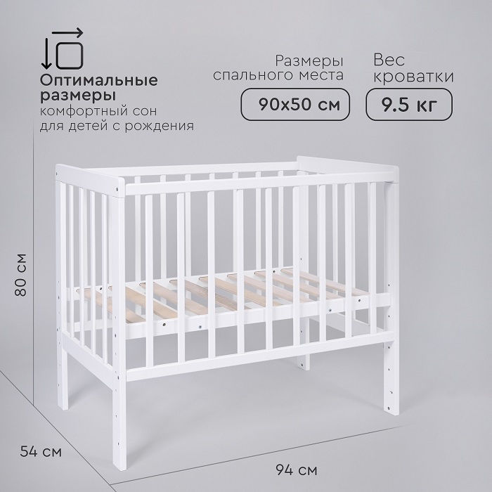 - Размер кроватки с колесами /без колес: 94х54х85,5/80 см