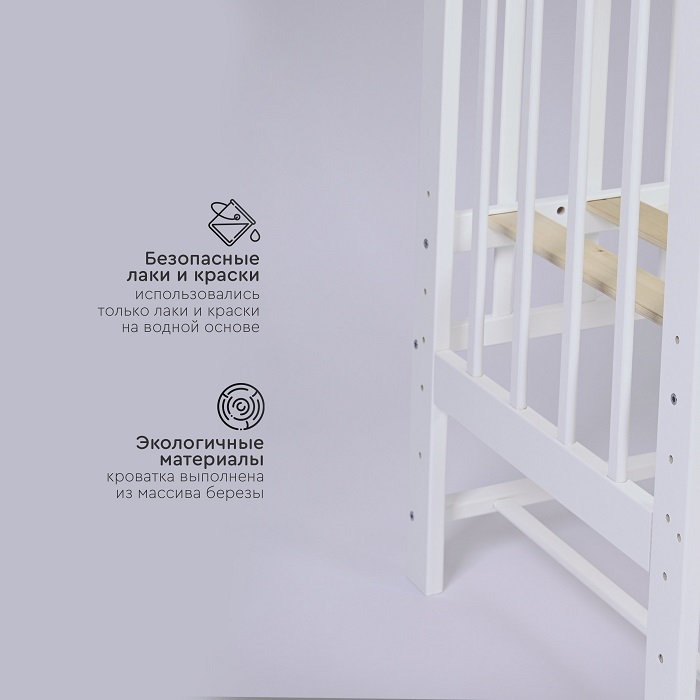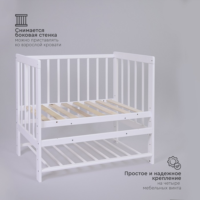 В комплекте с кроваткой идет специальное крепление для крепления к родительской кровати, что очень удобно для родителей во время сна. Так же ребенок может спать отдельно, достаточно прикрутить переднее боковое ограждение.