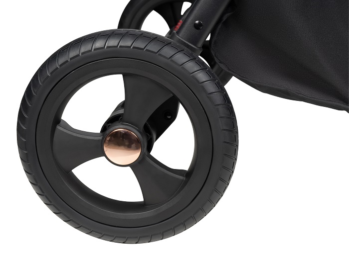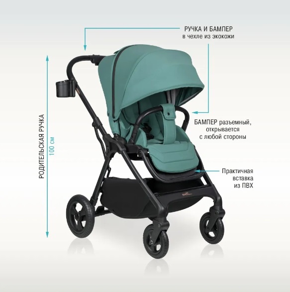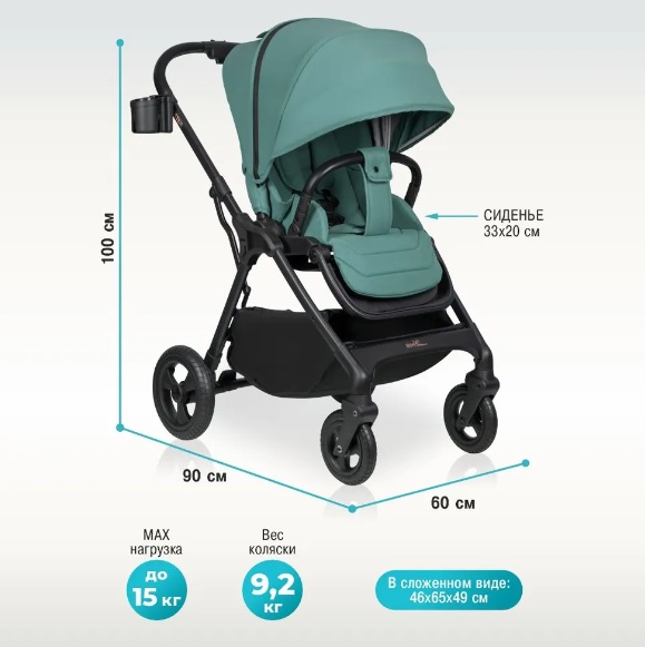 Коляска весит всего 9 кг, что позволяет маме легко справляться на прогулке с ребенком и коляской. Коляска легко управляется и хорошо маневрирует на дороге. Колеса из полиуретана износостойкие и не прокалываются. За такими колесами очень легко ухаживать, а ваша коляска всегда готова к прогулкам. Амортизация на всех колесах позволит гулять по любому дорожному покрытию.
