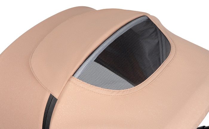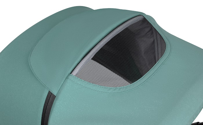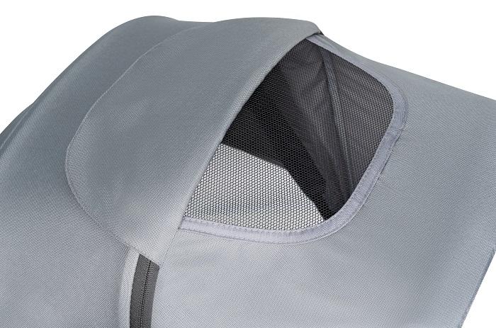 На капюшоне есть смотровое окошко с сеточкой для вентиляции в жаркие дни. Закрывается и открывается на магните.