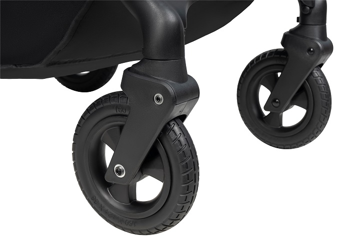 Большие проходимые колеса выполнены из полиуретана, этот материал не боится проколов и не нуждается в подкачке. Передние колеса поворотные, с фиксацией в положении «прямо».