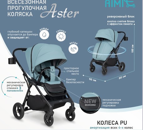 Коляска Aimile Aster (аимиле астер) - уникальная коляска от легендарного бренда Aimile Original. Невероятно красивая и функциональная коляска для ребенка от 6 месяцев до 3 лет. Реверсивное сидение, то есть возможность установить сидение по ходу и против хода движения, позволяет перевозить в коляске даже ребенка более раннего возраста. Перевозка ребенка против хода движения позволит маме удобно общаться с малышом во время прогулки, а ребенку будет более спокойно и комфортно на улице.