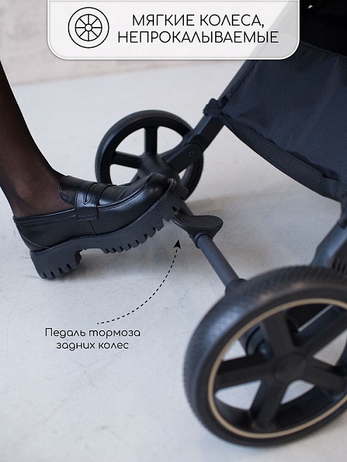 Коляска имеет надежное устойчивое шасси с практичными резиновыми колесами. Такие колеса долговечны, не требуют специального обслуживания, не прокалываются и не сдуваются. Передние поворотные колеса позволят легко управлять коляской, даже одной рукой. В коляске большая корзина для покупок и кармашек для мелких предметов.