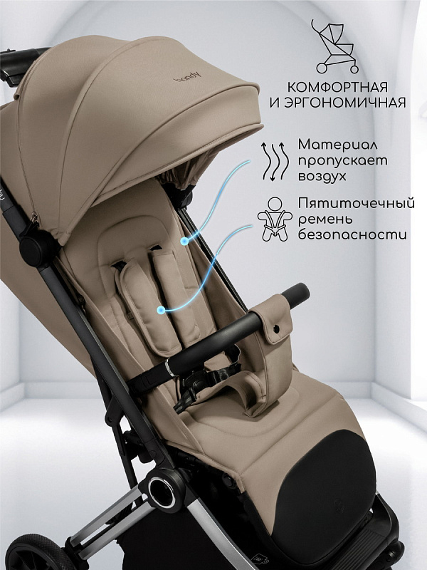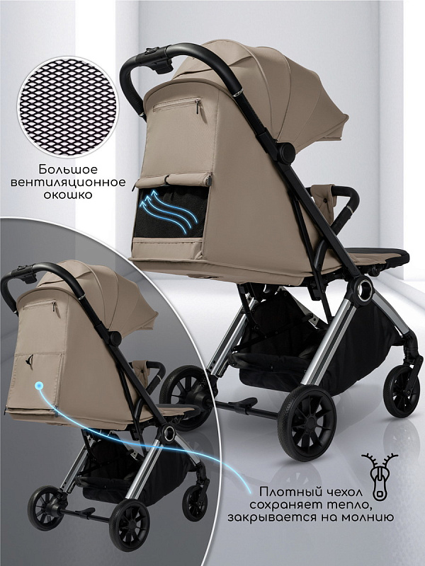 - Качественная легкая плотная обивка для прогулок в любую погоду. Водозащитная. С защитой от УФ лучей 50+