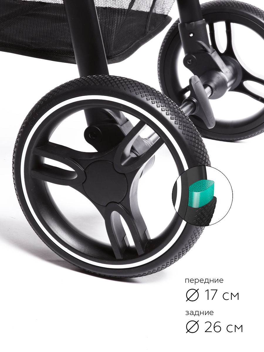 - диаметр колес: передние – 17 см, задние – 26 см