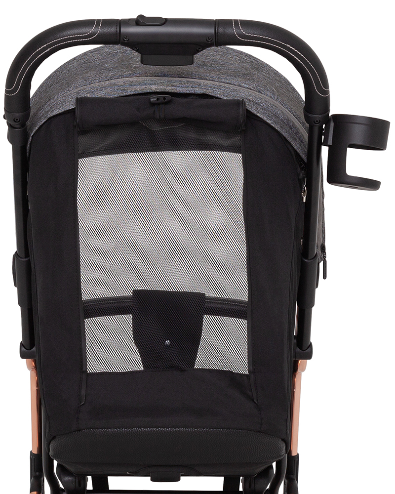 - Подножка регулируется по высоте и выполнена из эко кожи для удобства чистки после прогулки.