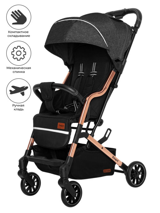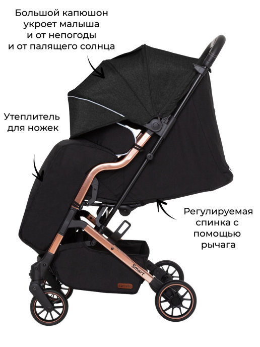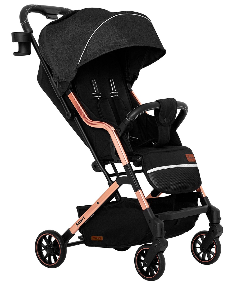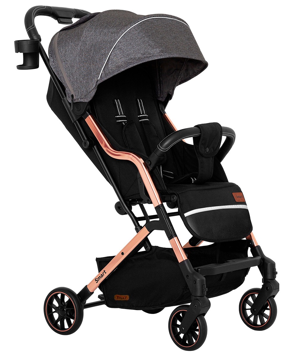 Прогулочная коляска Baby Tilly Smart T-169 (Беби тилли смарт) - яркая и стильная городская коляска для ежедневных прогулок с ребенком от 6 месяцев до 4 лет. Коляска отличается оригинальным дизайном, золотой рамой и качественной текстильной обивкой, которая сделает пребывание ребенка в коляске комфортным. Небольшой вес коляски и удобное управление делают прогулки приятными, а путешествия простыми и удобными. В коляске удобный механический наклон спинки до почти горизонтального положения, регулируемая подножка с элементами из эко кожи. Для безопасности малыша предусмотрены удобные ремни безопасности, съемный бампер и ремешок от сползания. Ни лишним будет накидка на ножки в цвет коляски, которая укроет от ветра и согреет малыша в прохладное время года.