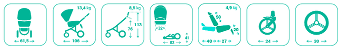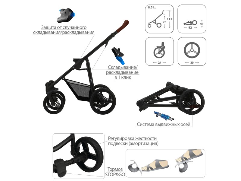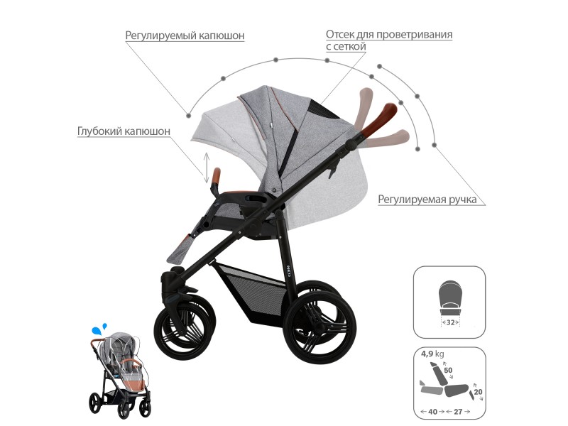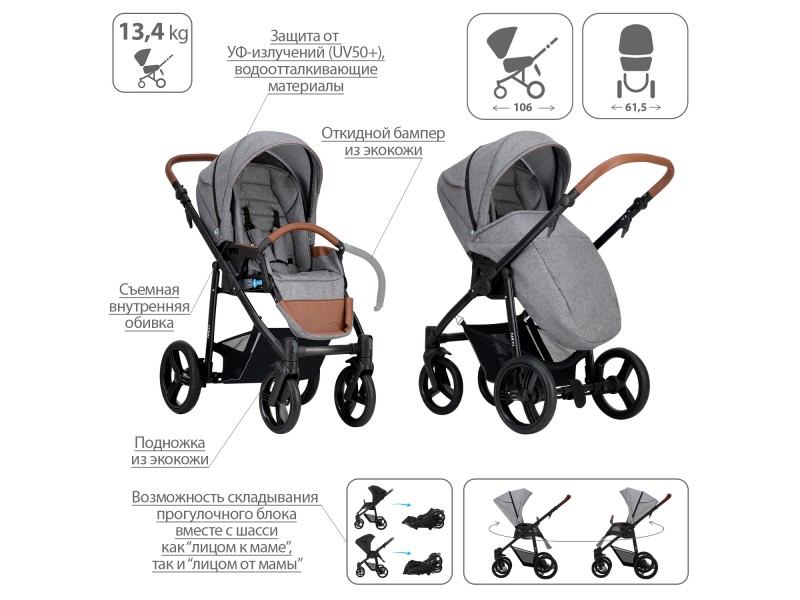 Обивка коляски: водоотталкивающая, съемная, с УФ-защитой 50+.