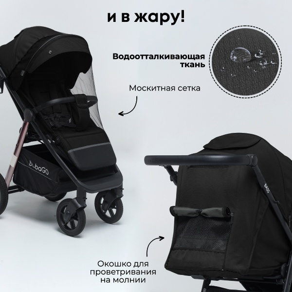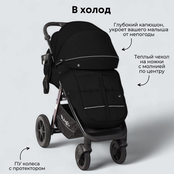 Так же коляска Bubago отличается большой комплектацией. Все, что нужно для прогулок в любое время года, уже есть в комплекте.