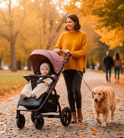 Настоящей находкой в коляске Cross City LUX являются PU-колеса с протектором — прочные, устойчивые и неприхотливые. Они обеспечивают отличное сцепление с поверхностью, легко справляются с неровностями, гравием, плиткой и даже бездорожьем. Амортизация на всех четырех колесах гарантирует мягкий ход без вибраций, даже если вы гуляете по загородным дорожкам или старому асфальту. Передние колёса можно зафиксировать для движения прямо — удобно при прогулках по снегу или песку.