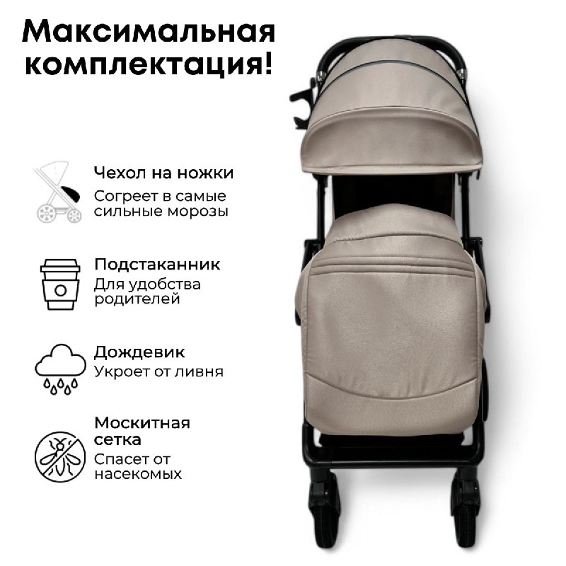 - Универсальность и комфорт: Коляска подходит для использования в любое время года и не боится плохих дорог, благодаря маневренным колесам и пружинной амортизации. Теплый чехол для ножек, глубокий капюшон, продуманная система проветривания – делают поездки комфортными в любое время года.
