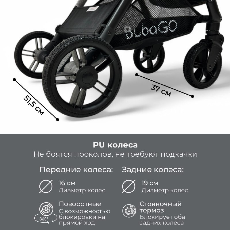 - Сочетание функциональности и дизайна: Коляска оборудована превосходными полиуретановыми бесшумными маневренными колесами, обеспечивающими отличную проходимость на различных поверхностях, а также пружинной амортизацией на 4х колесах.