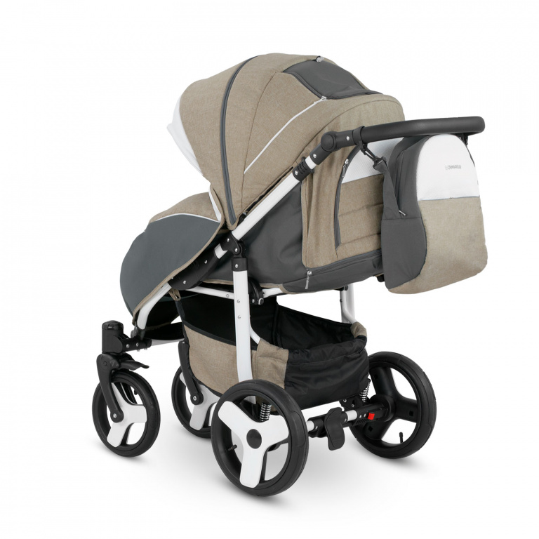 В комплекте с коляской идет удобная сумка -рюкзак для мамы, а так же подстаканник. Такие аксессуары обязательно пригодятся во время прогулок и сделают прогулку более комфортной.