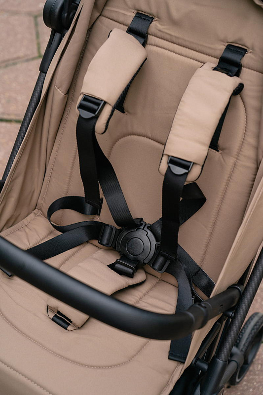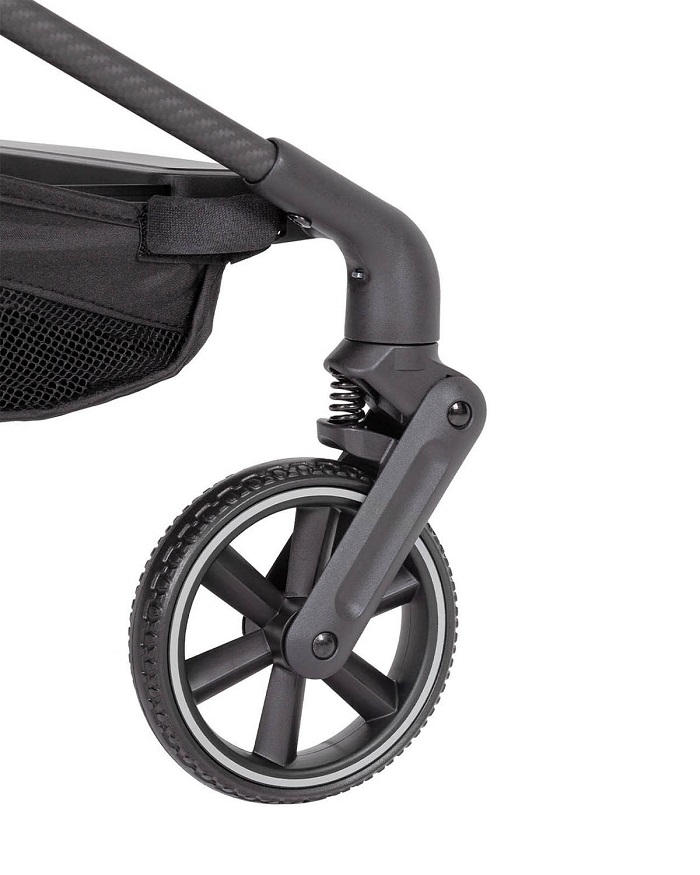 Легкость и прочность: Рама изготовлена из ультралегкого карбона, что делает коляску невероятно легкой, но в то же время надежной. Вы можете выбрать между глянцевым или глубоким серым покрытием алюминиевой рамы, что добавляет эстетическую изюминку.