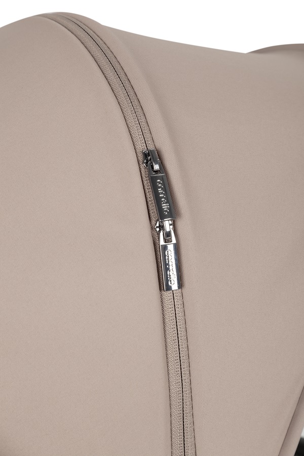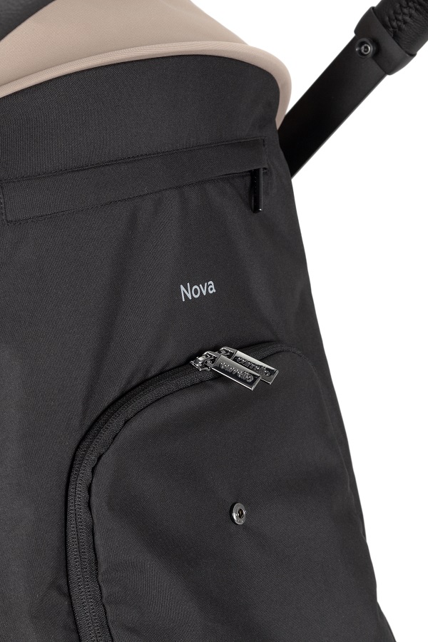Комбинированная рама с хромированными элементами прекрасно сочетается с качественной плотной обивкой коляски. Коляска смотрится эффектно и дорого.