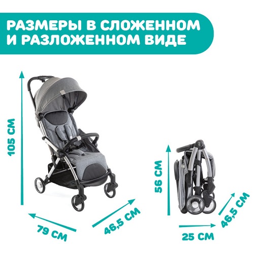 Размер коляски в сложенном виде: 25х46,5х56 см.
