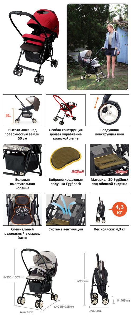 Высота ложа над поверхностью земли: 50 см Высокое ложе коляски облегчает контакт мамы с малышом.