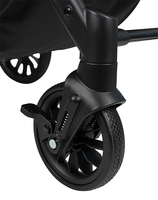 Проходимость коляски обеспечивается за счет прочных колес PU (мягкий и прочный материал, устойчивый к проколам и порезам), которые не требуют подкачки и дополнительного ухода. Маневренности добавляют амортизаторы и вращение передних колес на 360°. При необходимости все колеса легко снимаются, что значительно облегчает уход за ними после прогулок.