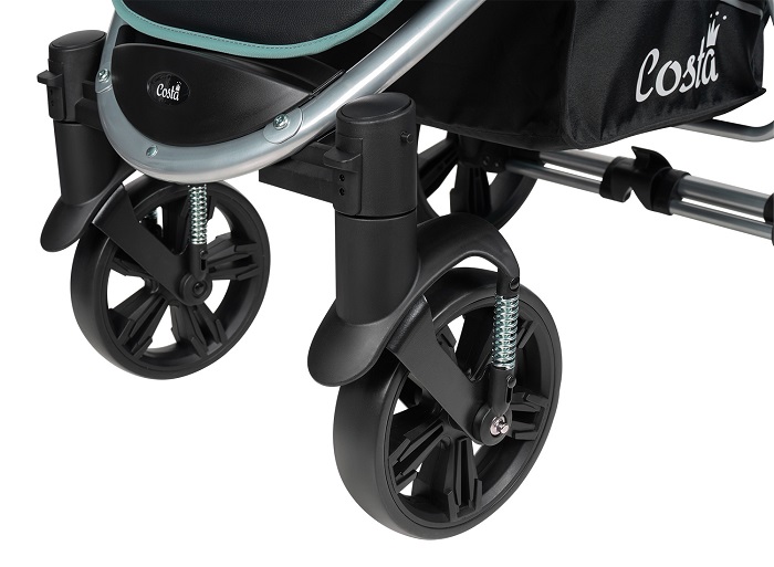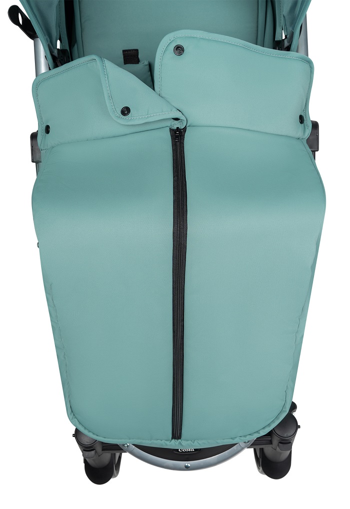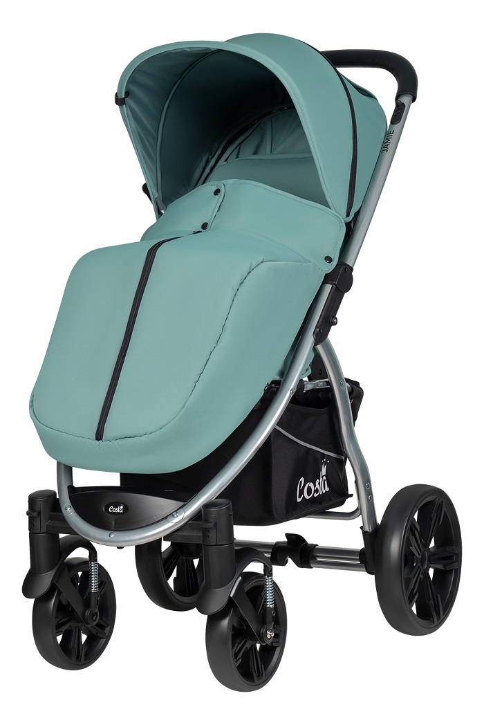 Коляска Costa Jamie (коста джеми) - всесезонная коляска которую можно использовать круглый год. Коляска выполнена из качественной плотной ткани 300D с водоотталкивающим эффектом, поэтому ваш ребенок будет надежно защищен от ветра и осадков. Большой капюшон до бампера и теплая накидка на ножки позволят полностью закрыть ребенка от любой непогоды. Накидка на ножки имеет молнию посередине, для удобного доступа к ребенку. На всей коляске предусмотрены светоотражающие элементы, которые сделают коляску более заметной в темное время суток.