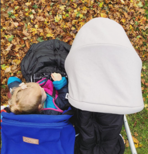 Капюшоны у детей регулируются отдельно. Это удобно, если один малыш спит, а второй малыш хочет смотреть по сторонам. Есть смотровые окошки для мамы.