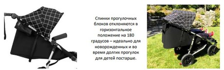 Для двойни с рождения - разложите оба сидения коляски в горизонтальное положение, или установите два раздельных блока для новорожденных (приобретаются отдельно).