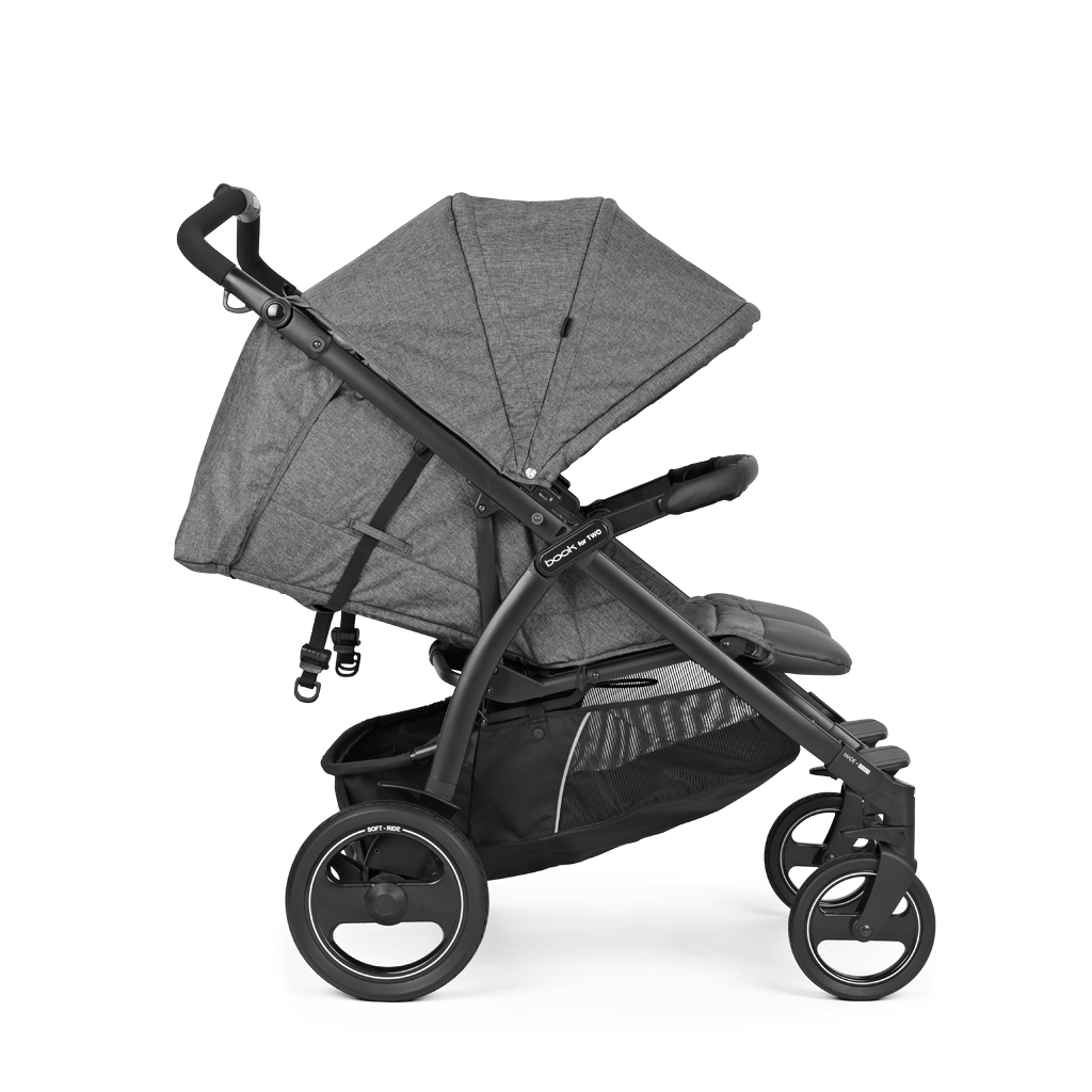 Прогулочная коляска для двойни Peg Perego Book for Two (пег перего бук фо ту) – это очень стильная, маневренная коляска с отличной амортизацией и плавным ходом. За счет больших колес это настоящий вездеход, которые проедет мягко и плавно по любой поверхности. При этом Book for two быстро и компактно складывается, стоит в сложенном виде и не занимает много места. А обивка коляски складывается во внутрь и не пачкается.