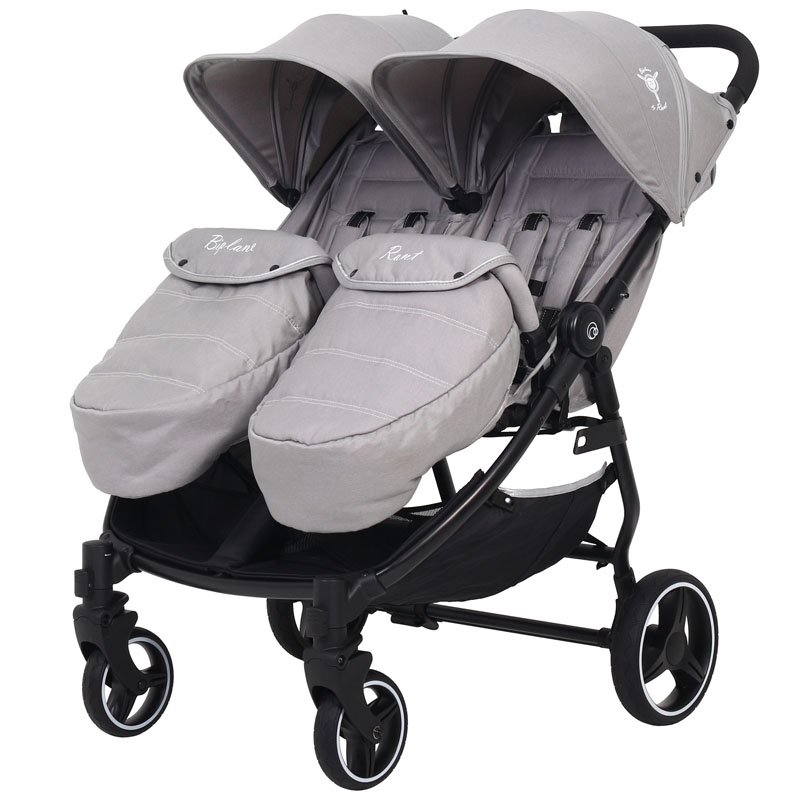 Прогулочная коляска для двойни Rant Biplane Trends (Рант Биплан Трендс) - детская коляска для двойняшек и близнецов, которая подойдет для выездов на природу, походов в торгово-развлекательные центры и прогулок по парку. Модель предназначена для детей от 6 месяцев до 3-4 лет. Эта надежная коляска представлена на алюминиевой раме и больших всепроходимых колесах. С такими колесами данный транспорт справится с любыми дорогами, ямами, кочками. Благодаря передним поворотным колесам коляска будет легко управляться.