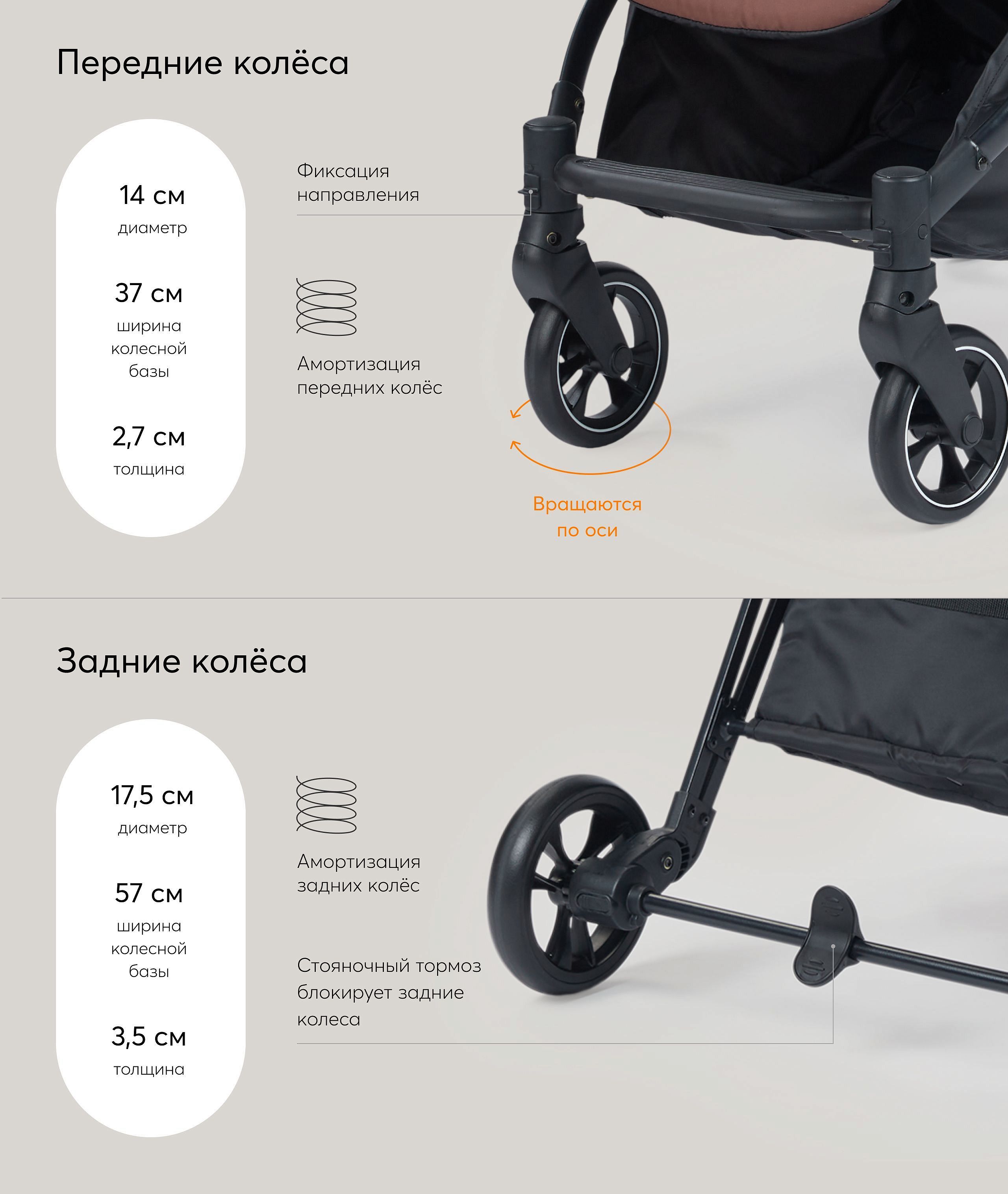 2 положения наклона подножки – 180ᵒ для удобства во время сна и 240ᵒ для прогулок в сидячем положении.