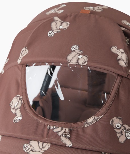 Большой капюшон со смотровым окошком, козырьком от солнца и дополнительным расширением на молнии.