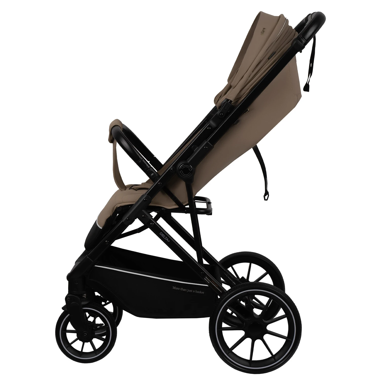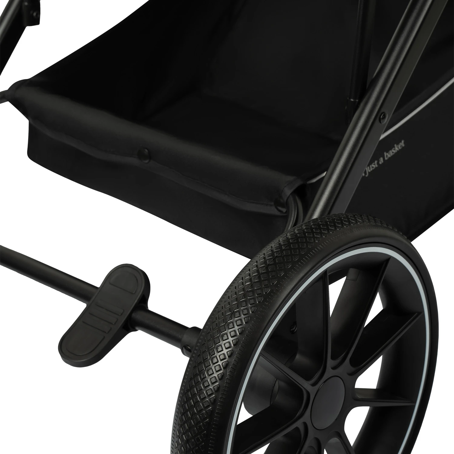 Коляска оснащена телескопической ручкой, что позволит настроить коляску под ваш рост. Удобная и просторная корзина позволит разместить в коляске все необходимые для прогулки вещи, покупки, игрушки.