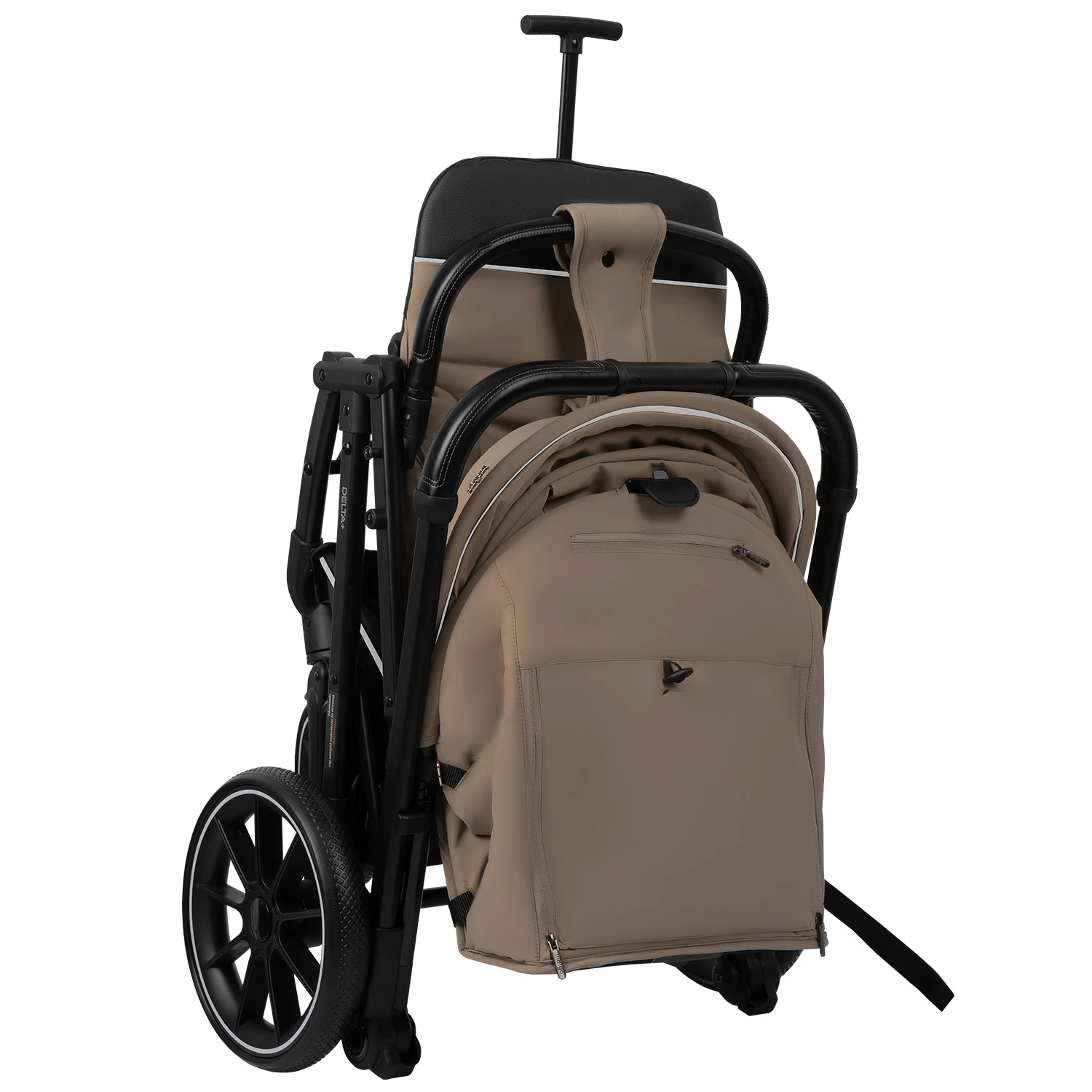 Складывается коляска книжкой быстро и компактно. Вся обивка складывается вовнутрь, что сохранит чистоту коляски во время транспортировки.