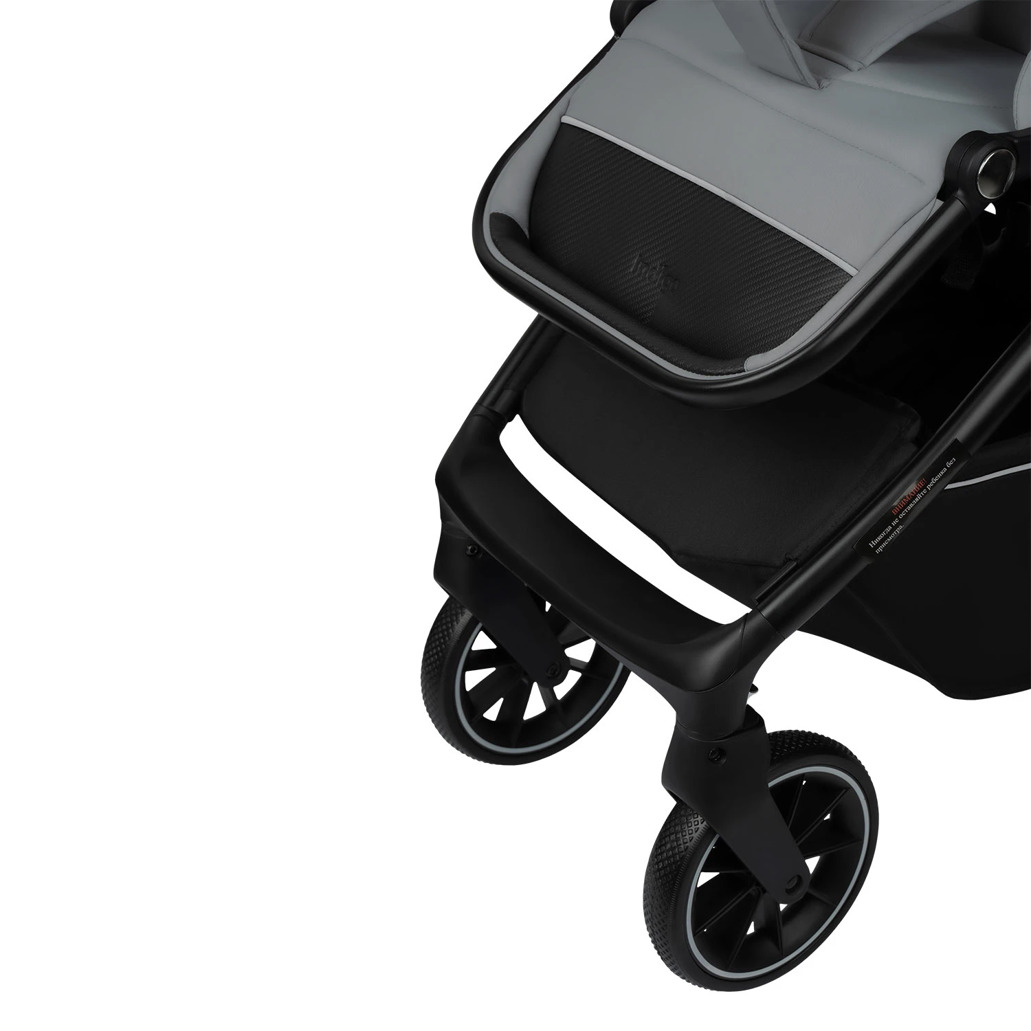 - Подножка с покрытием из эко кожи легко чиститься после прогулки и регулируется по высоте в 2 положениях.