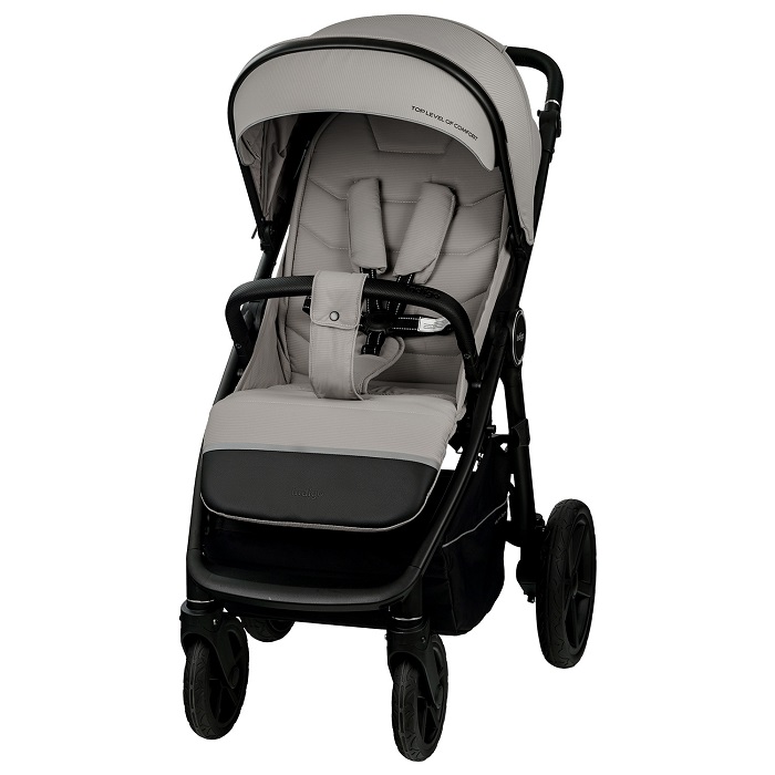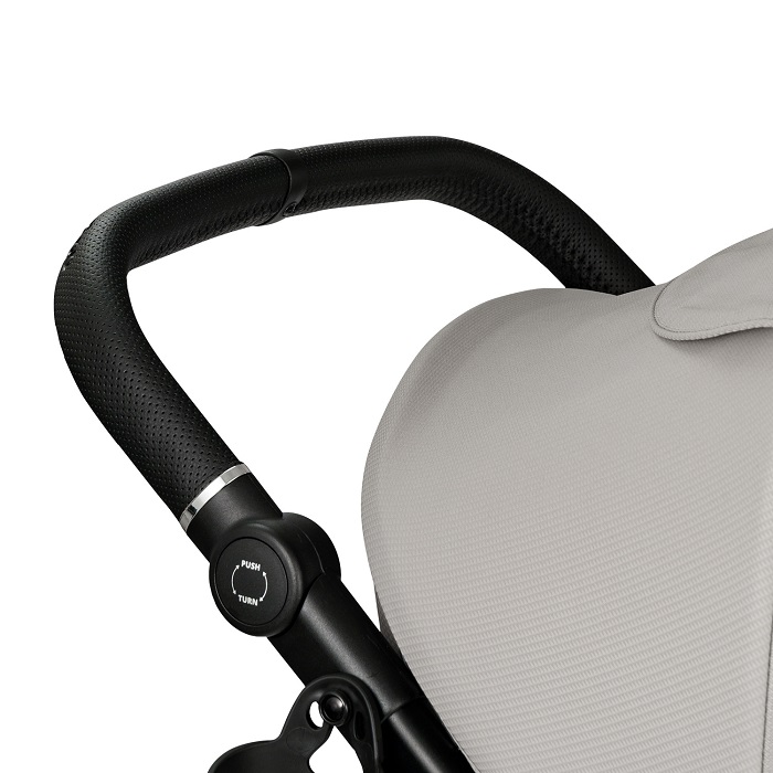 - Регулируемая по высоте родительская ручка из премиальной экокожи, пятиточечные ремни безопасности и бампер с защитой от сползания.