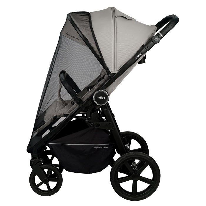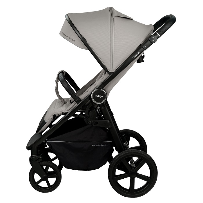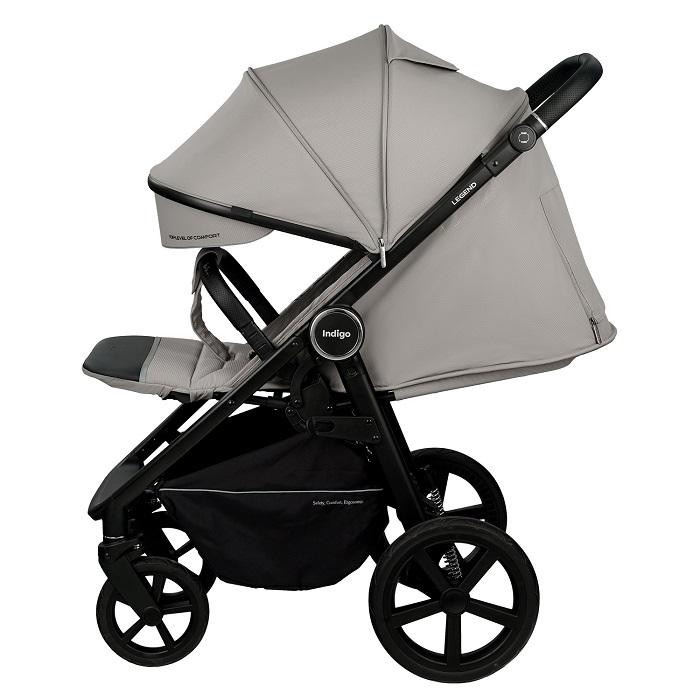 Indigo Legend (индиго легенд) - прогулочная коляска - вездеход на больших резиновых колёсах, с полностью горизонтальным наклоном спинки и большим капюшоном до бампера. Коляска –вездеход оснащена очень тёплым и удобным конвертом (накидкой) на ножки. Благодаря молнии посередине можно легко добраться до ребёнка, не снимая всё накидку.