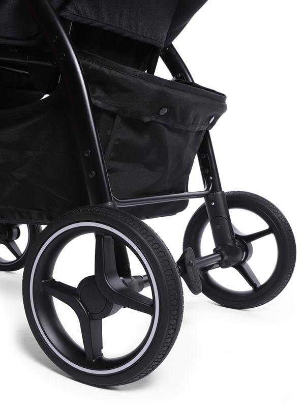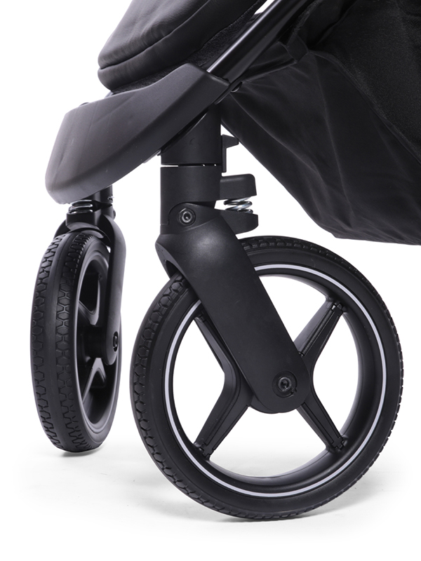- Резиновые колеса премиум-класса– устойчивы к проколам и износу, обеспечивают хорошее сцепление и малый вес по сравнению с надувными. Позволяют комфортно катить коляску по лестнице.