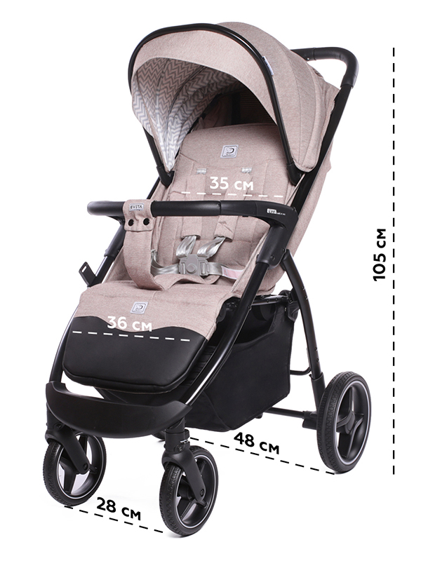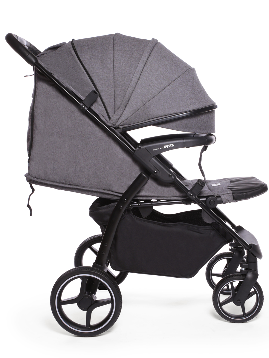 Прогулочная коляска Jetem Evita (Жетем Эвита) - большая, всесезонная коляска на легкой раме и больших колесах для ребенка от 6 месяцев. Такая модель прекрасно подойдет для прогулок в любую погоду и обеспечит ребенку комфортную атмосферу внутри. В данной коляске очень приятная обивка с утеплителем, что создает эффект "мягкого дивана", а все бортики утеплены и не продуваются. Большое широкое сидение прекрасно подойдет даже ребенку в объемной зимней одежде. Высокая спинка плавно регулируется от сидячего до горизонтального положения. Регулируемая подножка для ножек выполнена из эко кожи, что облегчит уход за данной деталью. Капюшон размера XXL полностью закроет ребенка от любой непогоды или яркого солнышка.