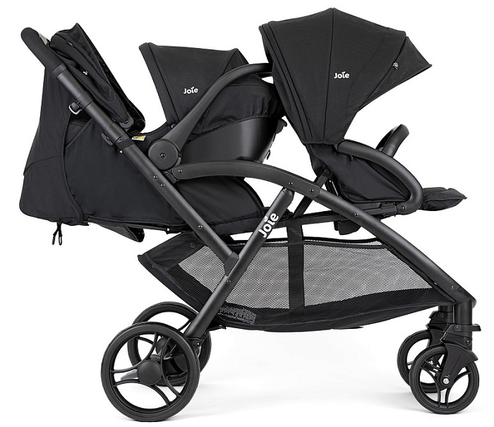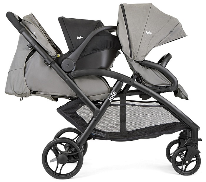 Коляска рекомендована для двоих детей от 6 месяцев, или для погодок с одним новорожденным. Дело в том, что у коляски два сидения. Заднее сидение раскладывается практически до горизонтального положения, что позволит создать комфортные условия для совсем маленького ребенка. Так же задний прогулочный блок снабжён системой Instant Sure Lock, которая позволяет без дополнительных адаптеров установить автокресло группы 0+ Joie Gemm или I-Gemm и использовать коляску для новорожденного малыша.